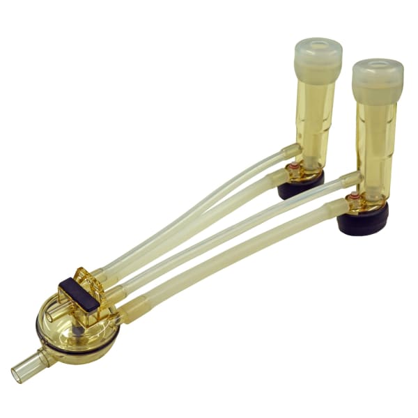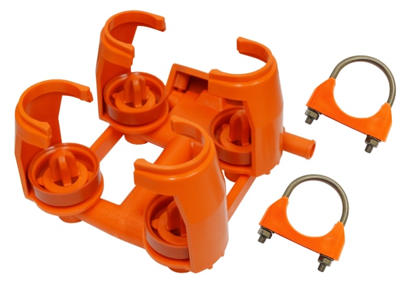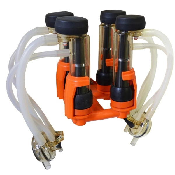 With side support clips, one unit for two goat clusters. This offers the best shell support while clusters are washing or stored but may not readily disingage on ACR start-up, necessitating manual release on vacuum start-up